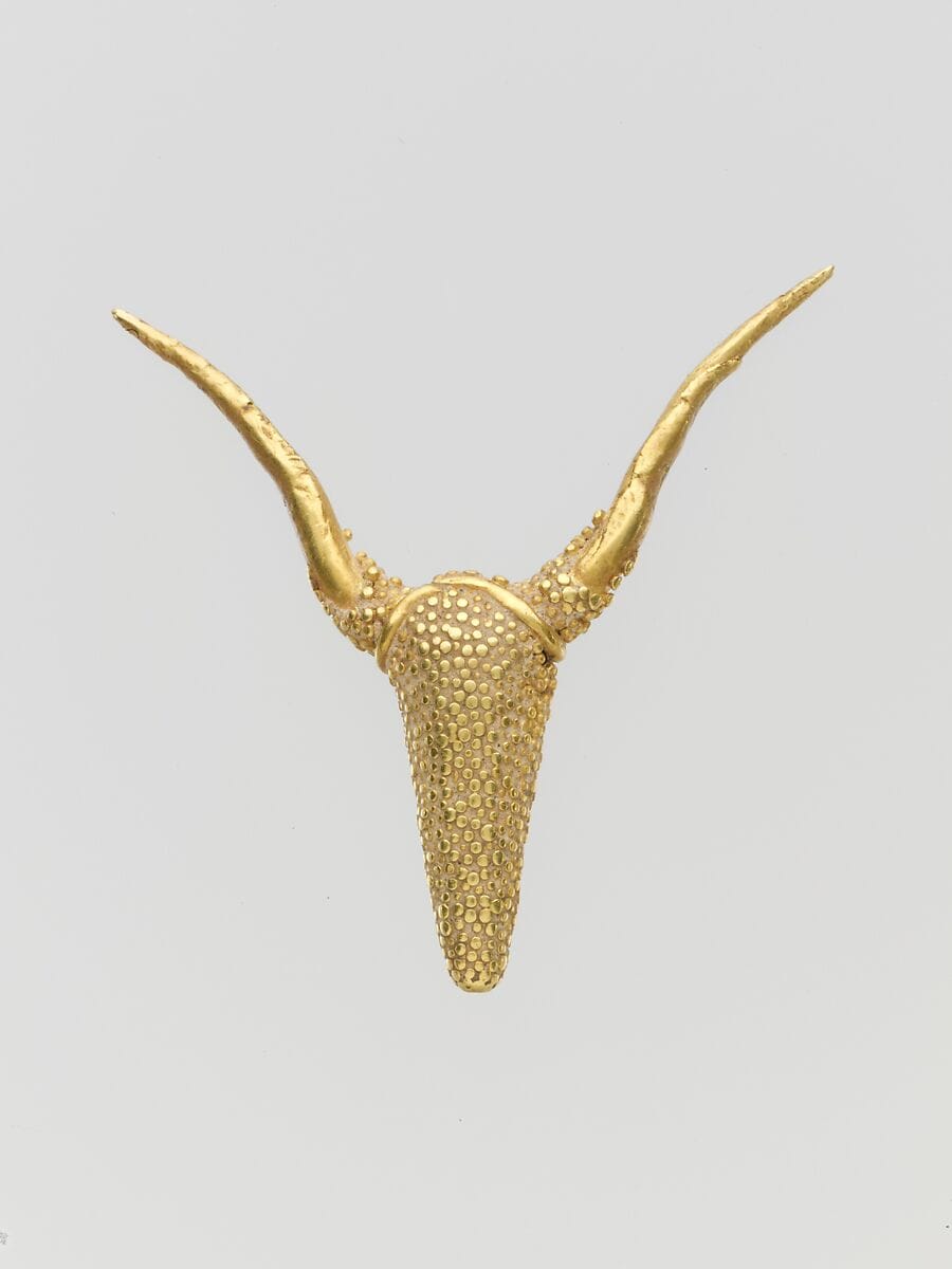 Pendant in the shape of a bull's head with granulation. L. 1 5/16 in. (3.3 cm)