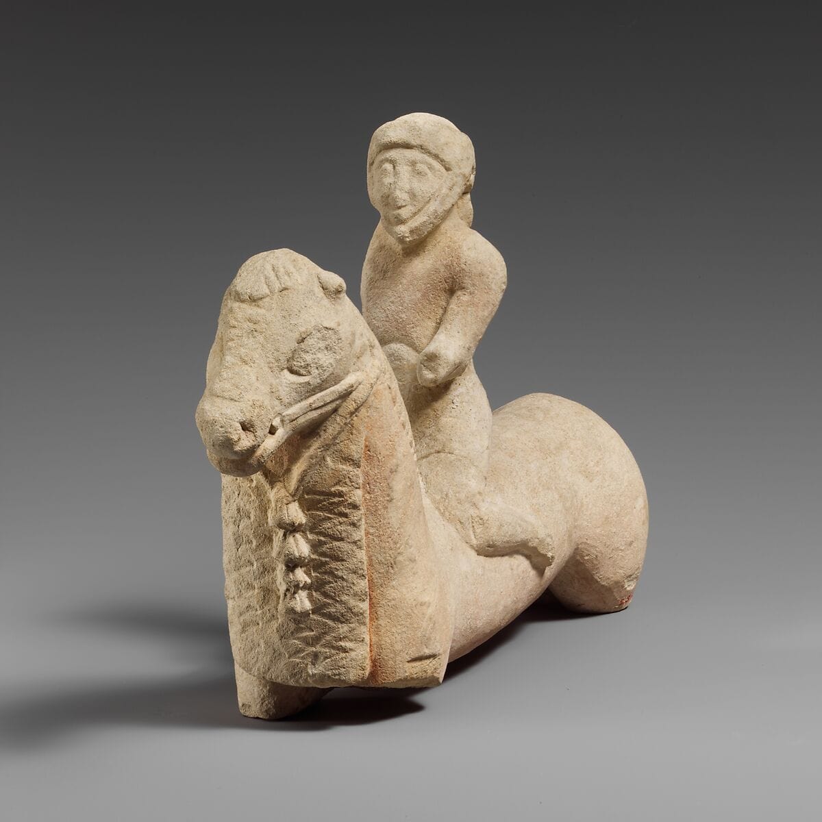 This rider is one of the earliest representations of a horseman in Cypriot sculpture. Overall: 7 1/2 x 2 7/8 x 12 in. (19.1 x 7.3 x 30.5 cm)
