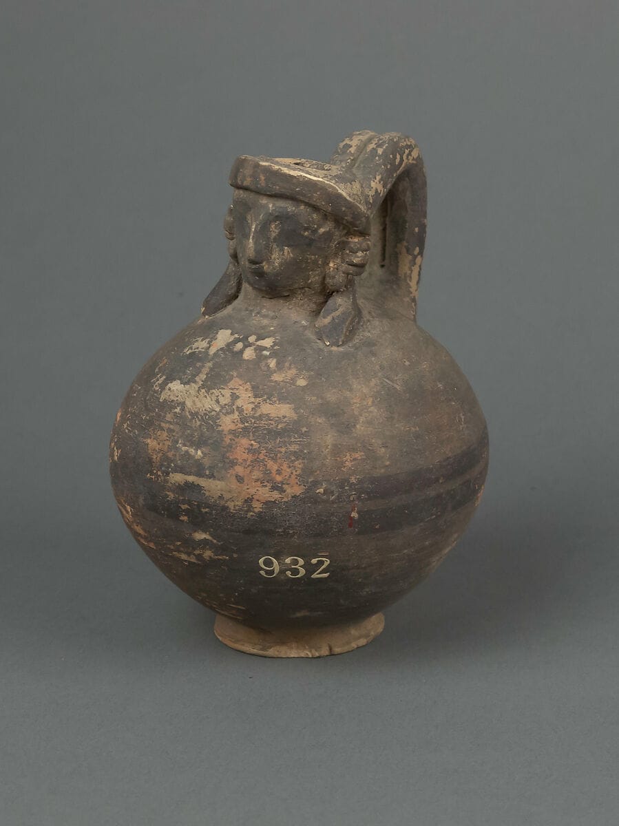 Jug with neck in form of modeled female head. 3 5/8in. (9.2cm)
