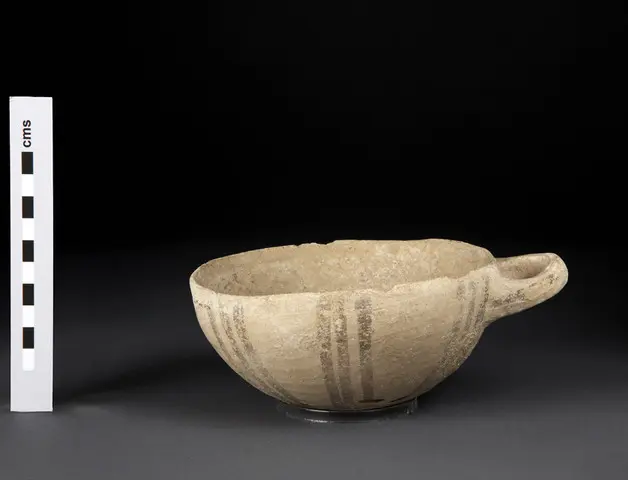 White Slip II bowl Dimensions: 7cm (height)all over 17.4cm (width)14cm (diameter) Reference URL: https://collections.ashmolean.org/object/304841 Object Type: container > vessel > bowl