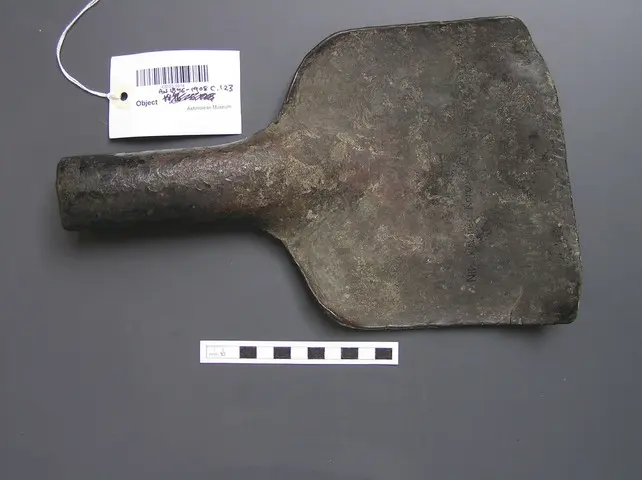 Bronze shovel Dimensions: 18cm (width)30cm (length)4.2cm (diameter) Reference URL: https://collections.ashmolean.org/object/304671 Object Type: tool or implement > shovel