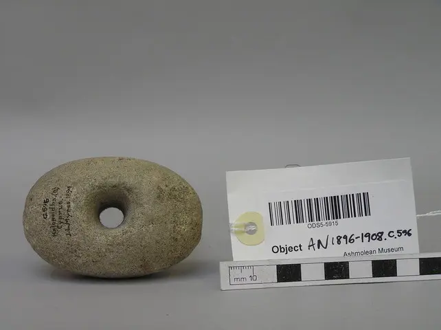 Stone Hammerhead Dimensions: 7.5cm (length) Reference URL: https://collections.ashmolean.org/object/308592 Object Type: tool or implement > hammerstone