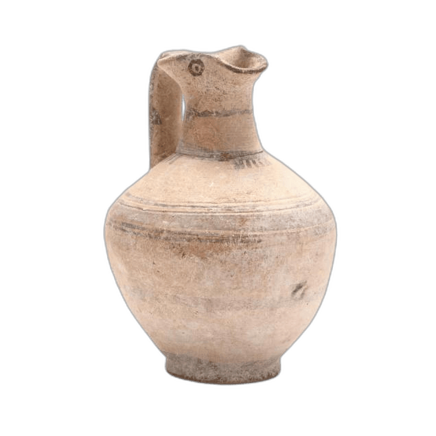 Cypro-Geometric Jug, circa 1000-700 B. C. , white ground with paint decorated eyes. 8 in. Overall wear. Sale Price: $210
