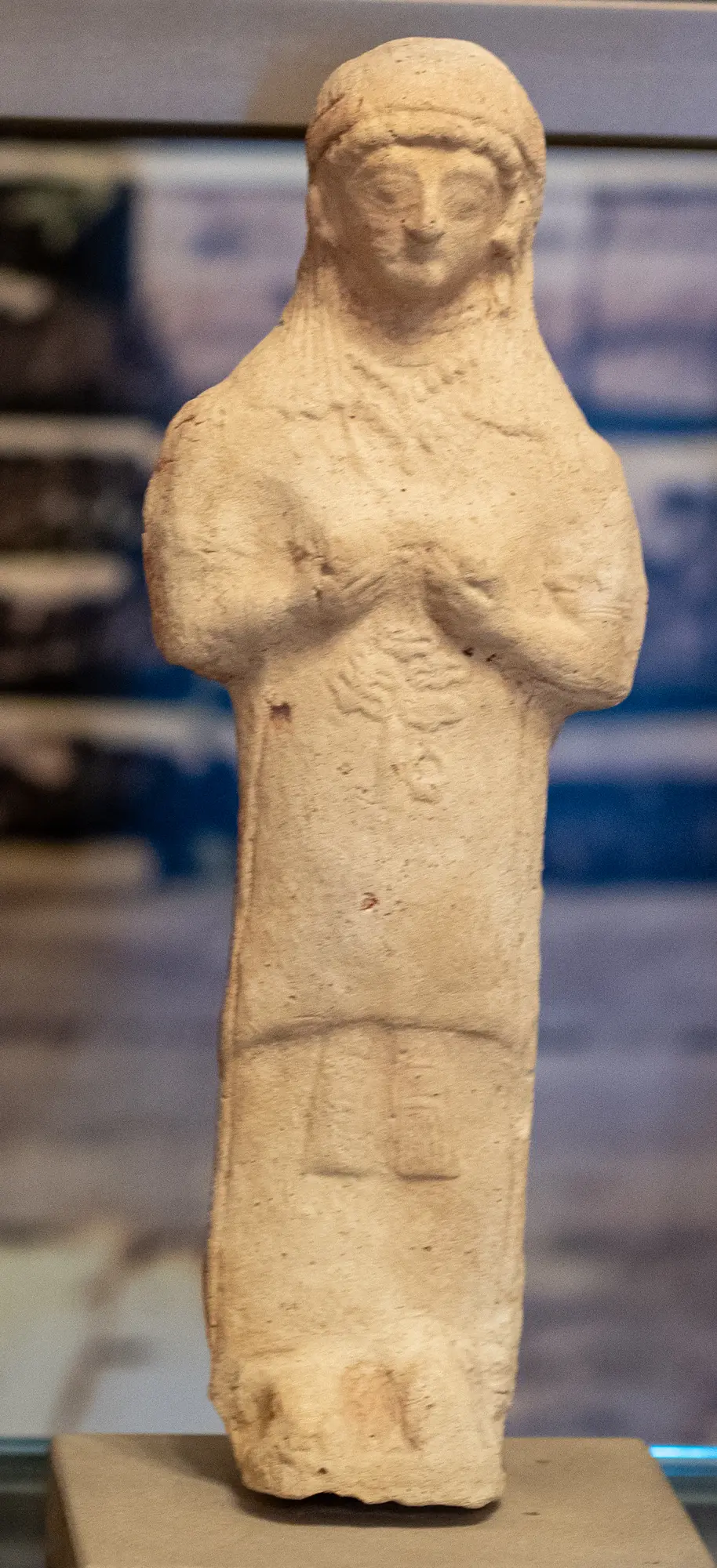 limestone statue of a woman cupping her breasts