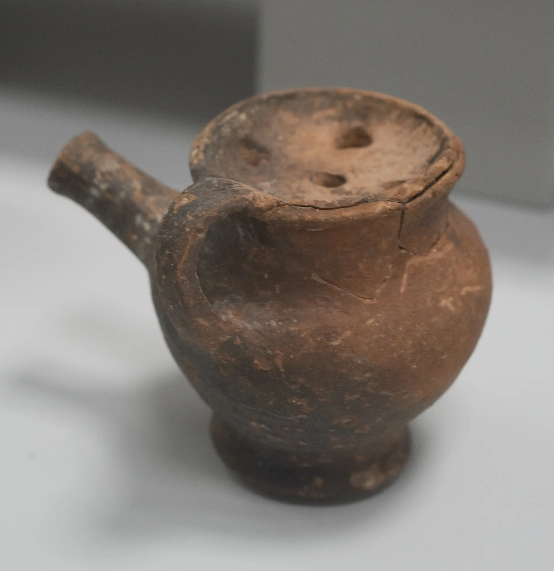 small strainer jar with spout and sideways handle