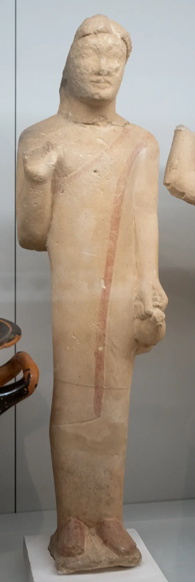 statue of votary, male, red pigment left over